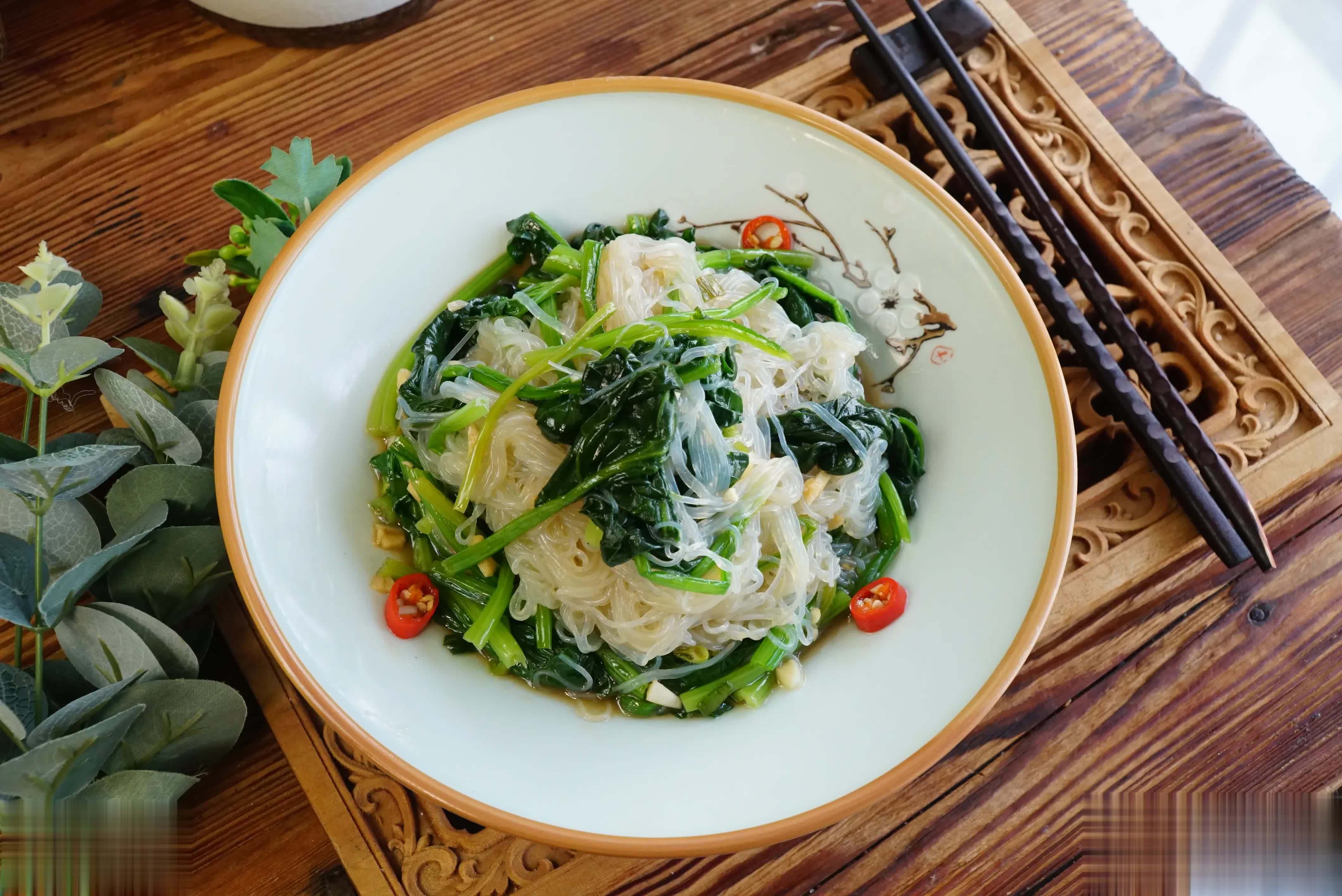在天气炎热、胃口不佳的时候,凉拌菠菜也是一道开胃小菜。可以和粉丝一起搭配,加入蒜末、生抽、醋和少许辣油,简单拌匀,清凉爽口又营养均衡。如果喜欢浓郁口感,还可以试试芝麻酱拌菠菜,香气十足,蛋白质和维生素都兼顾到了。