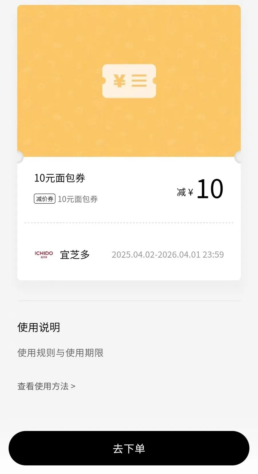 傅女士兑换的宜芝多10元面包券 受访者供图